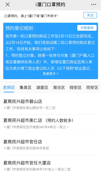 WeChat Official Account is also a very popular social media application in China Mainland. During the outbreak of new pneumonia, many cities open their WeChat Official Account in order to provide medical mask appointment service for citizens. Figure5 presents the service in Xiamen city. Citizens in Xiamen can choose the nearest medical stores to purchase medical masks by making appointments. The service allows citizens to buy medical masks in batches and limits purchase of medical masks per person which can reduce the risk of infection, provide reasonable distribution of medical supplies and avoid waste.